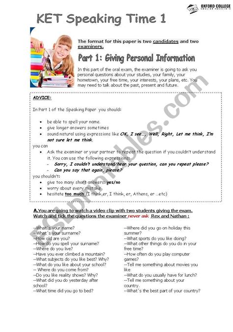 ket speaking sample paper